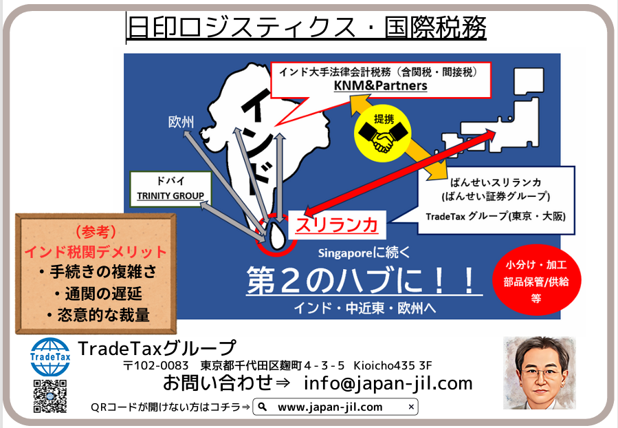TradeTaxグループは、インド・スリランカを中心に、国際物流・国際税務の課題解決をサポートします。